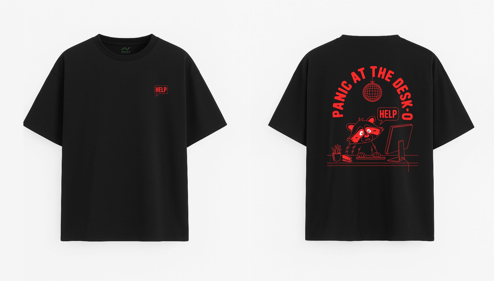Oversized black T-shirt "Panic"